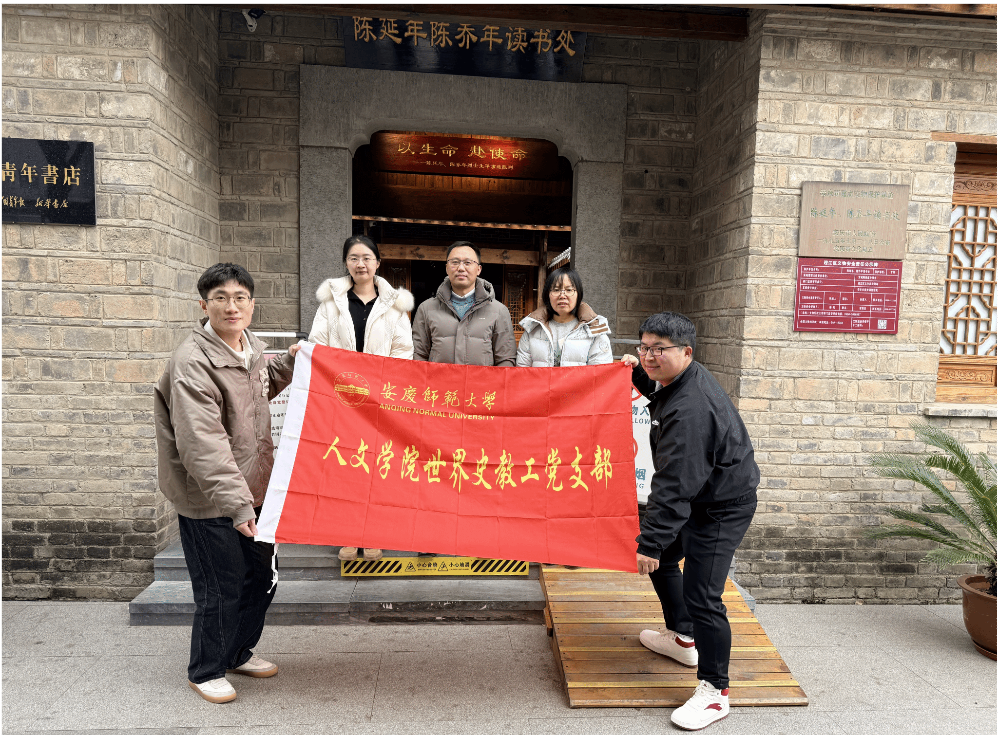 活动首站,支部党员教师一同参观了陈延年陈乔年读书处和安庆早期革命活动陈列馆。通过现场讲解、史料展示以及图片文献,党员教师深入了解了陈延年、陈乔年等革命先辈在新思潮传播与革命实践中的探索过程。