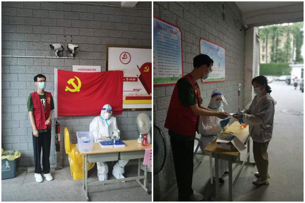 6月24日至30日期间,在与琥珀街道北苑村社区的工作人员取得联系后,王佑俊博同学就开始了他的爱心志愿服务工作。在谈到自己协作社区工作者开展志愿工作的体验时,王佑俊博说到:“医护工作者们认真负责,站在他们旁边常常可以看见厚厚的防护服被汗水浸湿的痕迹。相比他们,我觉得自己只是尽了些绵薄之力。”