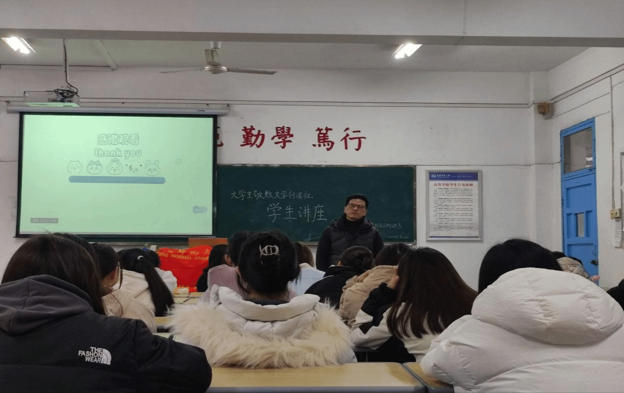 本次讲座增进了同学们对《麦田里的守望者》的主人公霍尔顿的理解,也了解了关于“垮掉的一代”的相关内容。作为人文学生,勤读书多思考常写作是我们应该具备的心态与能力。大学生敬敷文学创造社鼓励社员举办学生讲座,通过实践提高阅读和讲授能力。(撰稿:黎文婧 摄影:韩永洁 审核:江飞 王波)