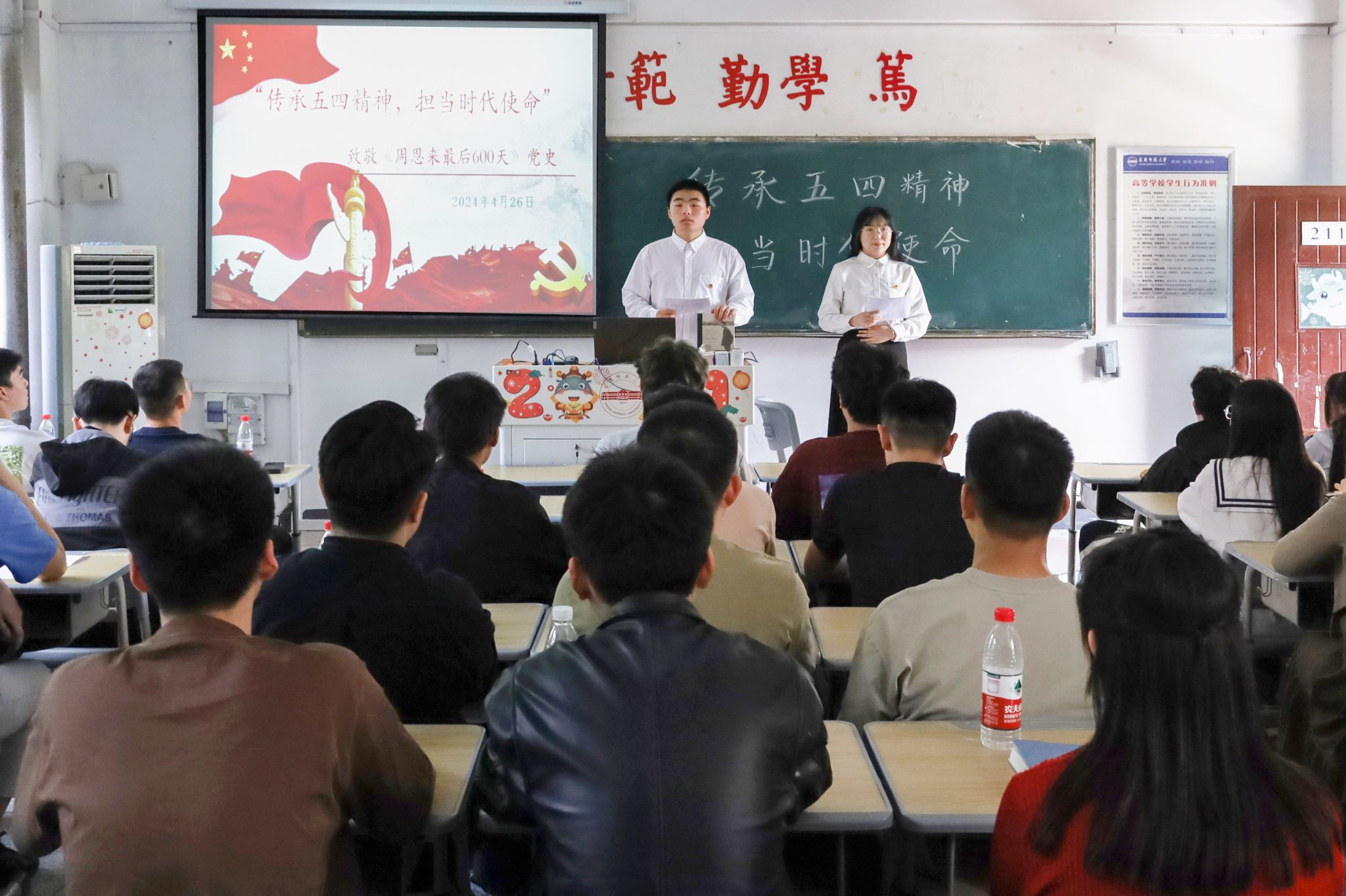 敬敷青年党史宣讲团成员之一、汉语言文学专业2022(4)班的王婧在宣讲结束之后说:“在此次宣讲的前期准备中,我通过查阅相关资料,深刻体会到了五四精神是中国近现代史上一种极为重要的精神力量。”她表示,自己将继续发扬五四精神,以实现中华民族伟大复兴为己任,不负时代所托。