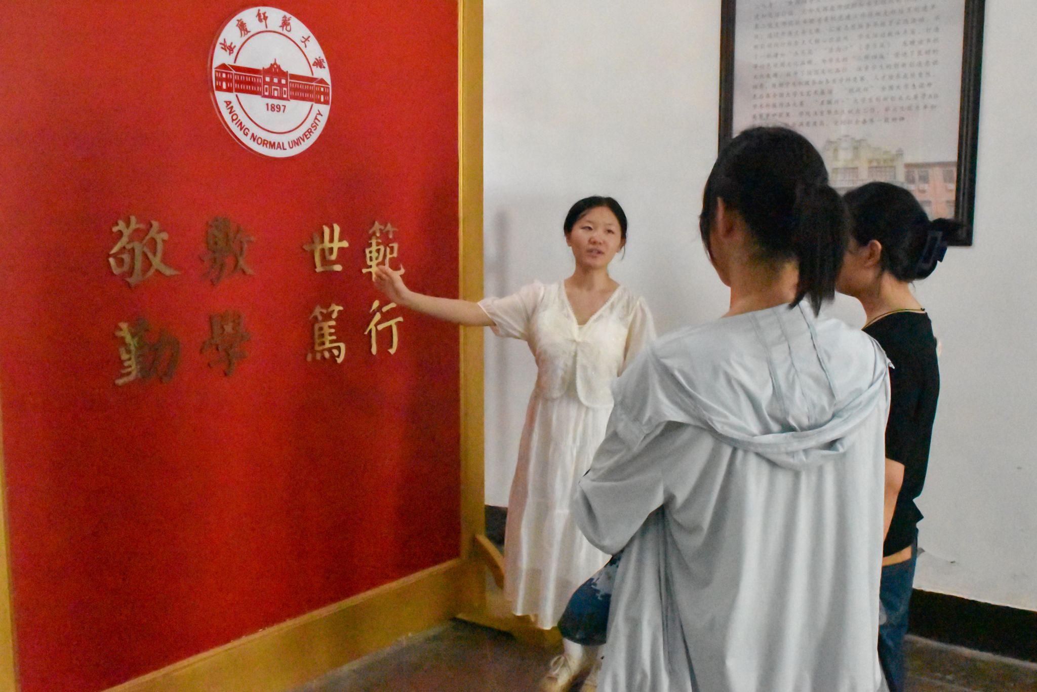 “我们的讲解稿以《安庆师范学院百年史稿1897-1997》为主体,同时融合了校情校史宣讲团的资料。”据活动负责人、汉语言文学专业2022(4)班的潘晨宇介绍,在8月26日,他们为学院青马班志愿者们进行了专项培训,要求每一位志愿者皆能够做到独立完整地进行讲解,提前安排了试讲环节,从实践中发现问题,解决问题,力求更好地去向新生及其家长展示出学校的风采与文化底蕴。