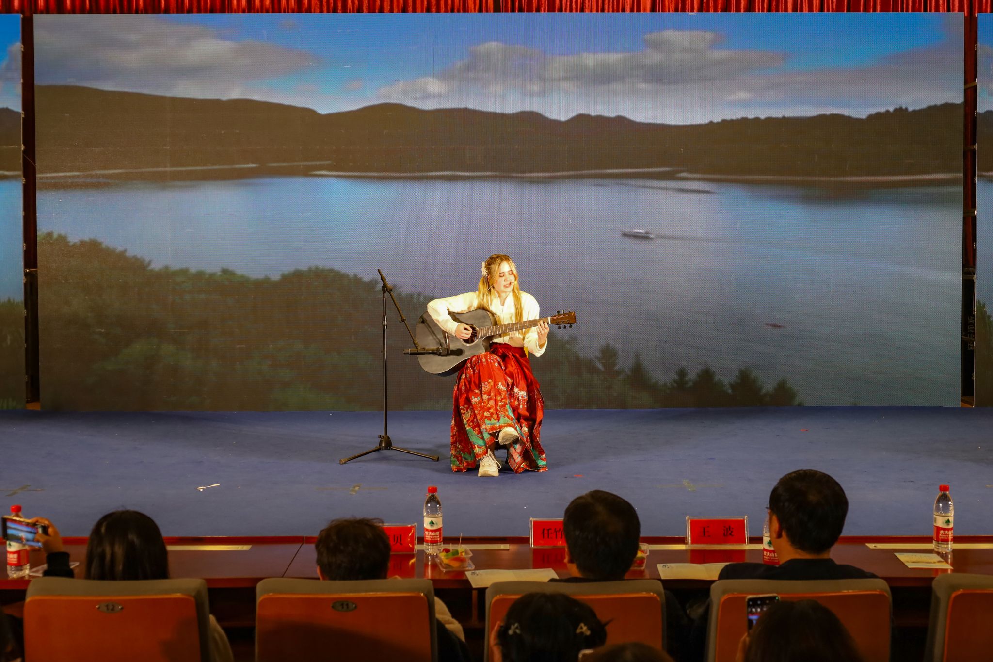 来自波兰的留学生表演者柯妤琳表示学校为她提供了优越的中文学习环境,她在排练节目的过程中一次次克服语言障碍问题,突破自我,以流畅的中文诠释好《我们还年轻,还年轻》这首经典歌曲。