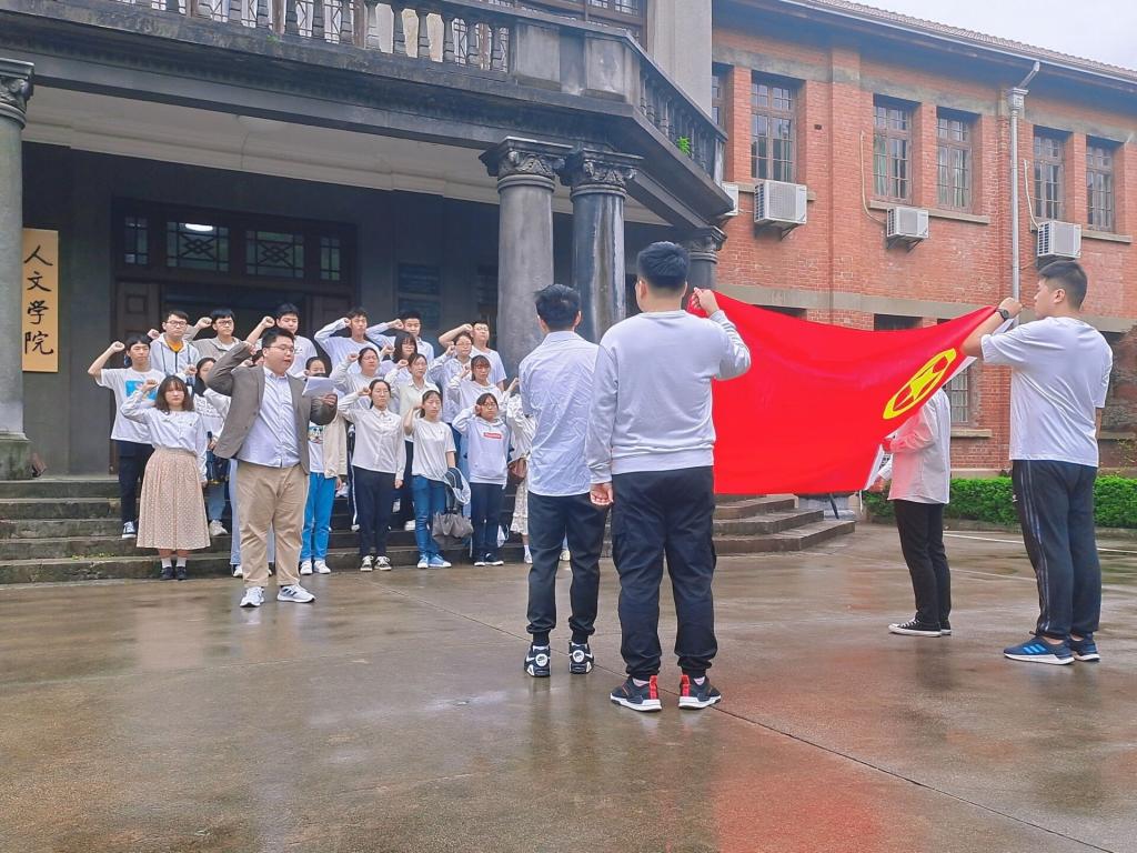 5月4日上午9:00,必威西汉姆官网平台预备入团学生、各团支部负责人在菱湖校区红楼前参加新团员入团仪式,四十余名同学庄重地跟随着国歌的旋律大声高唱。活动中新团员将团徽佩戴在左胸前,面对团旗庄严宣誓:我志愿加入中国共产主义共青团,坚决拥护中国共产党的领导,遵守团的章程,执行团的决议,履行团员义务,严守团的纪律……同学们用誓言彰显了成为共青团员的自豪与坚定为共产主义事业而奋斗的决心。