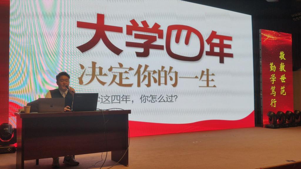 12月17日,必威西汉姆官网平台在菱湖校区图书馆报告厅举办“职”面人生大讲坛。华图教育职业规划师吴强应邀为2021级全体新同学做了“实现职业梦想 激发潜力未来”专题讲座。