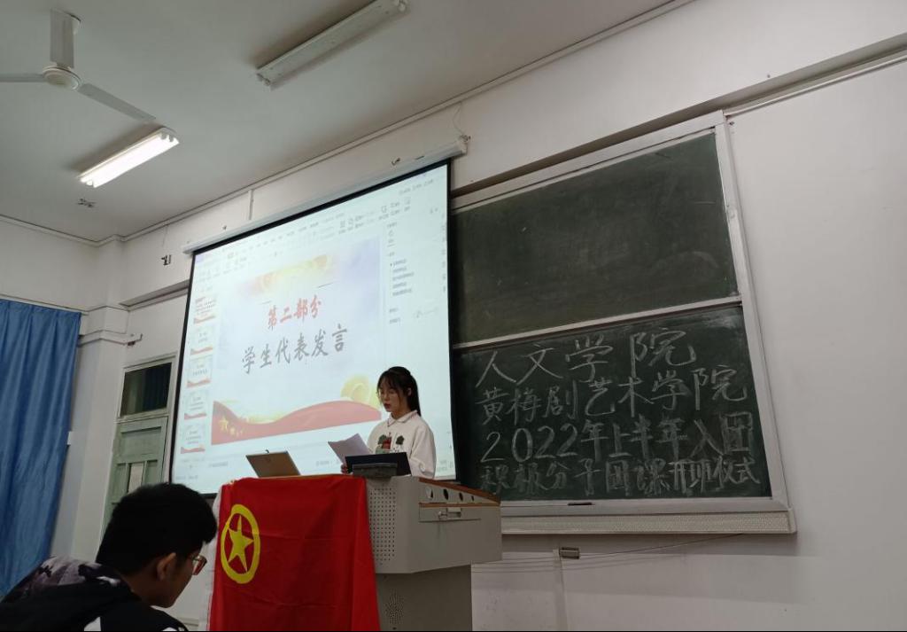 为强化团组织建设,做好团员发展工作,加深入团积极分子对共青团的认识,4月13日,必威西汉姆官网平台、黄梅剧艺术学院在教学楼315教室联合举办了2022年上半年入团积极分子团课开班仪式。必威西汉姆官网平台团委书记刘旭婷老师进行第一堂授课,两个学院近百名入团积极分子参加了团课。