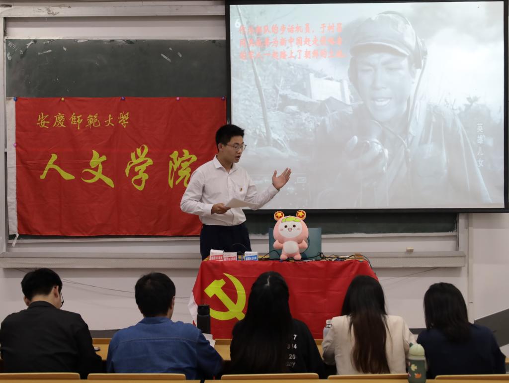 中国语言文学类专业2021(5)班的唐筠茹从革命战争年代“半条被子”的故事中挖掘军民鱼水情。继而她又将眼光转向现代,通过黄文秀、石光银、黄大发的事迹向学生们展现“半条被子”的故事仍在延续,爱民亲民的革命精神生生不息,融入了一代又一代共产党人的血肉之中。