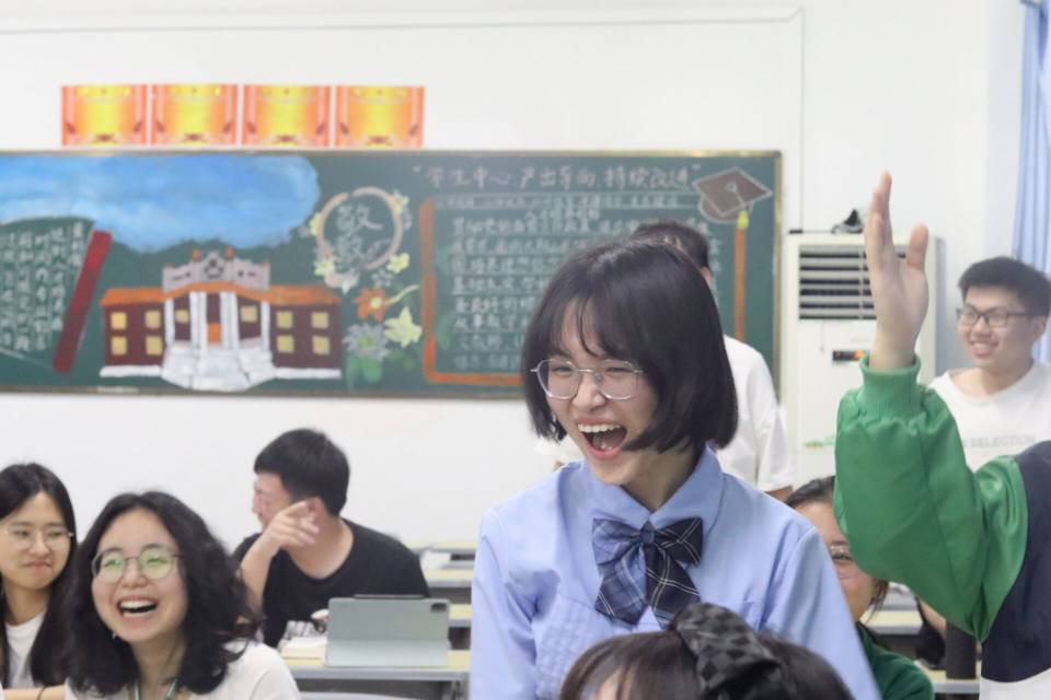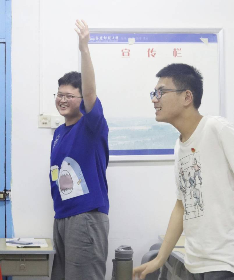 活动在铿锵有力的团歌声中拉开序幕。“中国社会主义青年团第一次全国代表大会何时召开?”题目宣读完毕,“开始抢答!”团支书许佳诺发出做答口令,选手们立刻作出反应,迅速从座位上起立以争得优先答题权。随着主持人念出一道道题目,参与者们争先恐后抢答,气氛十分高涨,于是主持人提高难度,要求抢答人必须在听到“3、2、1”口令后,站起并举手者方可回答题目,但依旧阻挡不了学生们想要为组争分,赢得奖品的热情。中途出现了学生回答错误的情况,但同学们仍不放弃,接着又站了起来坚持要将题目答对为止,惹得全场哈哈大笑。