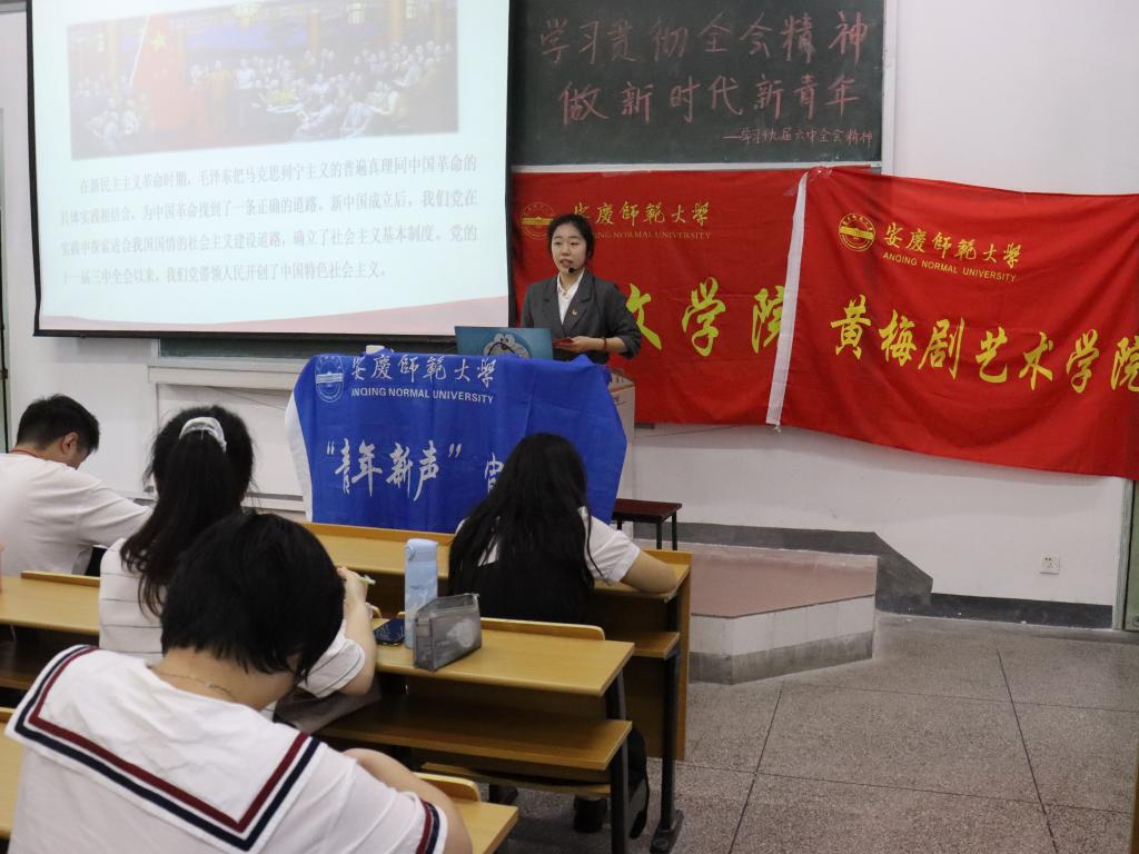 “十九届六中全会召开的具体时间是?” “新民主主义革命的前途是什么?”“十九届六中全会上通过的决议是历史上第几次重大决议?”……5月28日,马克思主义学院“青年新声”宣讲团走进菱湖校区,在教学楼315教室为必威西汉姆官网平台和黄梅剧艺术学院学生呈现了一场主题为“学习贯彻全会精神,做新时代新青年”的宣讲会,共吸引一百多名学生到场聆听。