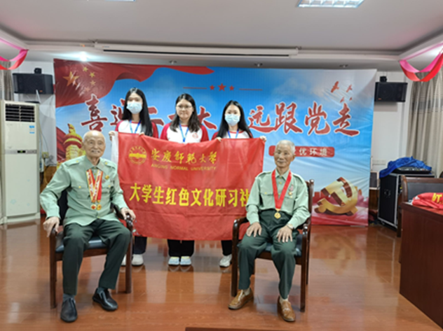 实践团联系安庆市退伍军人干休所,对柴瑞轩老先生进行走访。柴老先生现已九十多岁,他16岁参军入伍,17岁加入中国共产党,参加了仓靖战役、济南战役、淮海战役、渡江战役、淞沪战役等大小解放战争,柴老先生表示“有一分热,发一分光”。