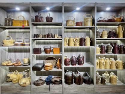 唐氏竹编也在不断丰富完善设计用料等方面,从最开始单一的毛竹编制,到引进南方的湘妃竹、紫竹等,不断在纹理、外形上追求创新。在设计方面,唐氏竹编不断拓宽竹编工艺的应用领域。在唐氏竹编的展示馆里,实践团看到,竹编已经不仅仅局限于编制一些最基本的生活用品,逐渐扩展到各种款式的女士手提包、婴儿的摇摇车、形态各异的花瓶…这让实践团的成员们看到高峰村竹产业崛起的背后,也是一代代热爱家乡,愿意回报桑梓的年轻高峰村人的努力,更是家乡技艺的代代相传。