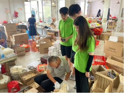 实践团来到位于高峰村的唐氏竹编的制作工厂,唐氏竹编的传承人唐诗礼热情地与实践团成员交谈。交谈中,实践团成员了解到,竹制品加工是高峰村当地的传统优势产业,唐诗礼先生的竹编技艺师从其父,从事竹编已有四十多年历史,唐氏竹编传到唐诗礼这一代,在当地已经历了五代。近年来,他也十分注重传承人的培养,为了将唐氏竹编的技艺传承下去,已经在外打工多年的女儿唐圣丽也回到了高峰村跟着父亲学习竹编技艺。
