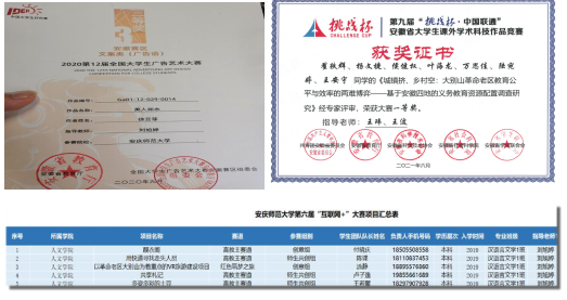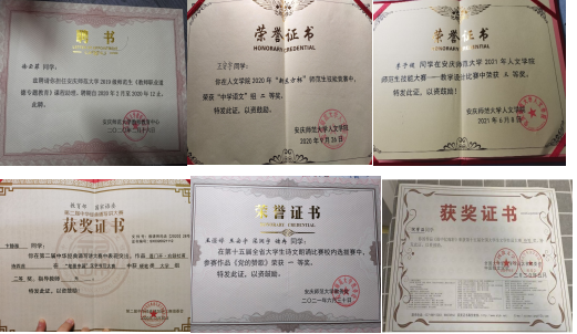 我支部同学在努力夯实专业知识的基础上,还不断尝试,积极参与,在一次一次磨练之中促进专业技能的提升,无论是国家级考试的达标率,还是作为师范类学生的重要技能检验—师范生技能大赛以及由此衍生的普通话粉笔字教案等多个方面的比拼,我班同学都以扎实的功底展示出了无限可能,夺得了众多资格证书和多个突出奖项。全班同学积极参加国家级考试,英语四级通过率高达97%,普通话二甲通过率高达90%,英语六级的通过率也达到了21%。此外班级同学还积极参加大广赛、挑战杯红色专项、大学生双创大赛、大学生艺术展演等AB类赛事中均有获奖,更有同学在挑战杯中挺入国家终审决赛。