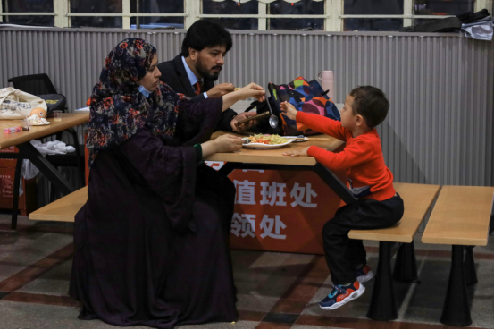 来自巴基斯坦的外籍教师穆拉德·阿里沙与自己的妻子孩子坐在餐厅一角,品尝着中式美食。他表示,活动现场热闹活跃的气氛深深感染了他。他在中国已经授课近三年,这样的一次中外文化交流活动带给了他很新奇的体验。“我品尝了一些中国食物,还在学生的帮助下学习了一些书法,这种感觉真的很棒。”