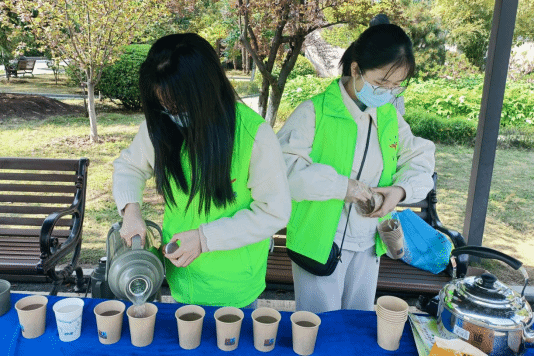 活动期间,曹忆凡与志愿者们在服务点忙前忙后,积极为不熟悉陵园布局的市民指路,并为便民服务点时及时提供茶水。志愿者们还化身绿色殡葬和文明祭扫的“宣传员”,在为市民倒茶水的同时,分发安庆市“‘宜’风易俗惠万家”项目传单,劝阻部分市民焚烧纸钱、携带假花入园的行为,鼓励市民文明祭祀,树城市新风。