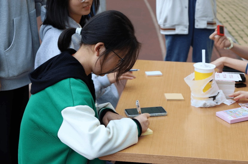 此次活动还增设了“时光邮局”这一特色环节,同学们在现场写下自己的心声与期望,借助“时光邮局”将信件寄往过去或未来。在信纸上,有的同学写下了自己的未来规划,有的同学向2020级正在备战考研的学长学姐加油打气,还有的同学借此表达了自己对中国共产党和中国共青团的殷切祝福。