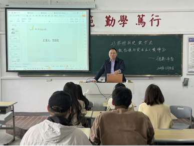 此次读书会主要分为主持人读书书目介绍、学生书籍内容介绍、师生讨论以及老师点评与总结四个环节进行。会议伊始,主讲人潘晋敏介绍了《新教伦理与资本主义精神》的作者,接着简要介绍了书籍的主要内容;随后,同学们对本次读书会所讲内容展开了激烈讨论。