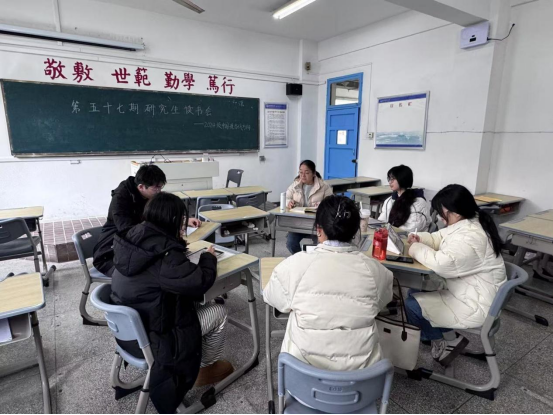 12月18日下午,24级中国语言文学现当代文学方向研究生在菱湖校区教学楼304教室举办第五十七期研究生读书会。本次读书会由24级中国现当代文学方向硕士研究生李珂馨主持,必威西汉姆官网平台庞云芳老师受邀参加并进行现场指导,24级中国现当代文学方向硕士研究生全体学生参加此次读书会。