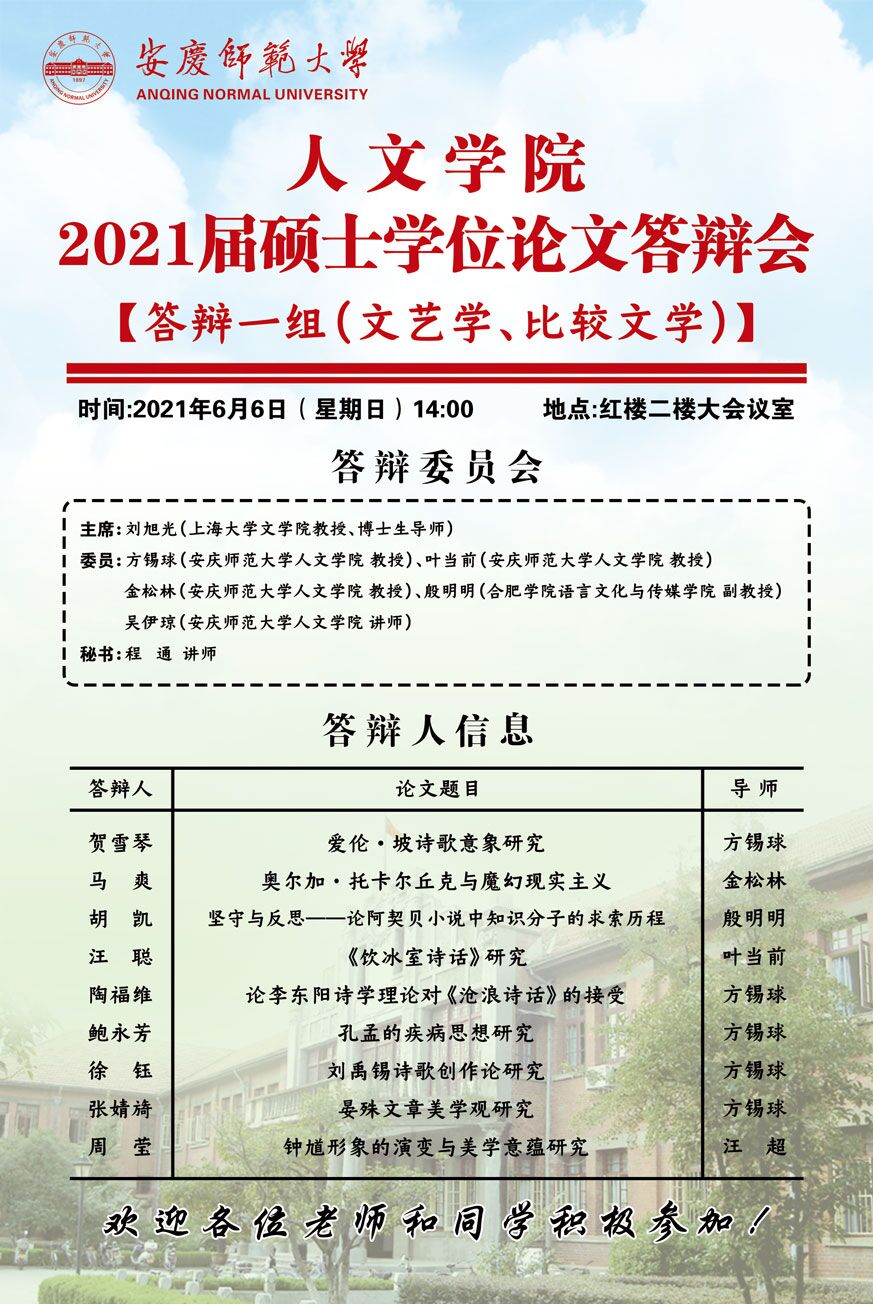 上一篇:推进文史对话融合,深化专业实践效果——2020级学术型研究生赴扬州专业实践报告会顺利举行
