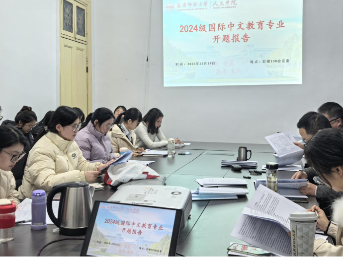 本次报告会采取线上线下相结合的形式的开展。2024级研究生依次对论文研究内容、研究思路和创新点等做了阐述,并汇报了论文的准备情况。各位导师围绕论文格式规范、论文框架的合理性,论文大纲的逻辑性等方面对每位同学的开题报告进行了全面、细致的评析,并提出了具体修改意见和要求。特别强调国际中文教育研究要立足实践应用,选题要以小见大,同时要兼具创新性,论文写作要精益求精,注重文献阅读积累,以严谨求实的科学态度撰写论文。