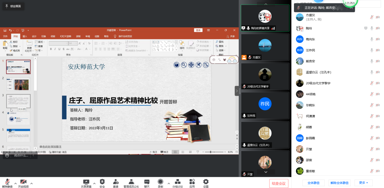 本次会议分为开题报告和中期考核两个部分进行。