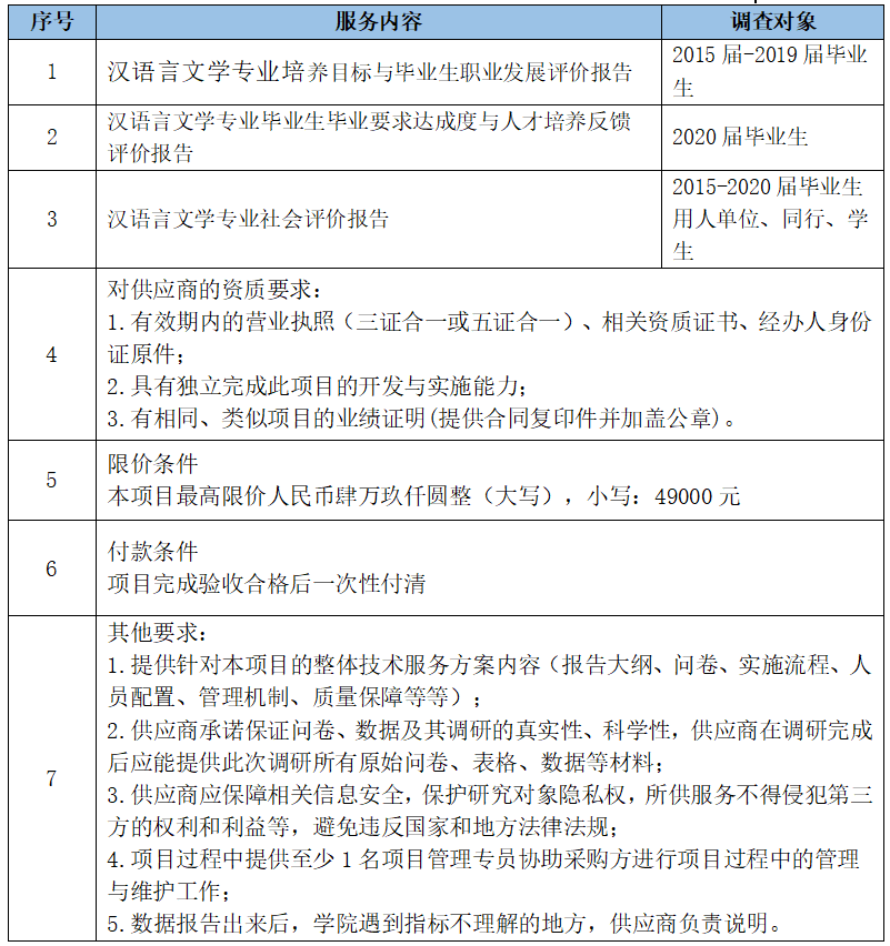 汉语言文学专业认证(二级认证)的要求,需要第三方公司提供专业支持服务,本服务包含满足认证要求的三个调研报告(本项目不分包):