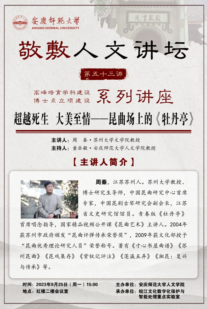 【敬敷人文讲坛(53)】超越死生 大美至情——昆曲场上的《牡丹亭》