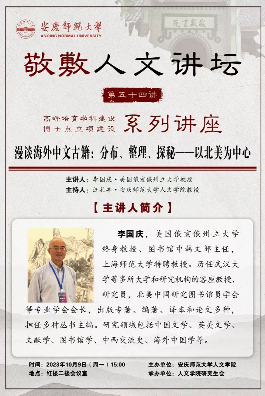 【敬敷人文讲坛(54)】漫谈海外中文古籍:分布、整理、探秘——以北美为中心