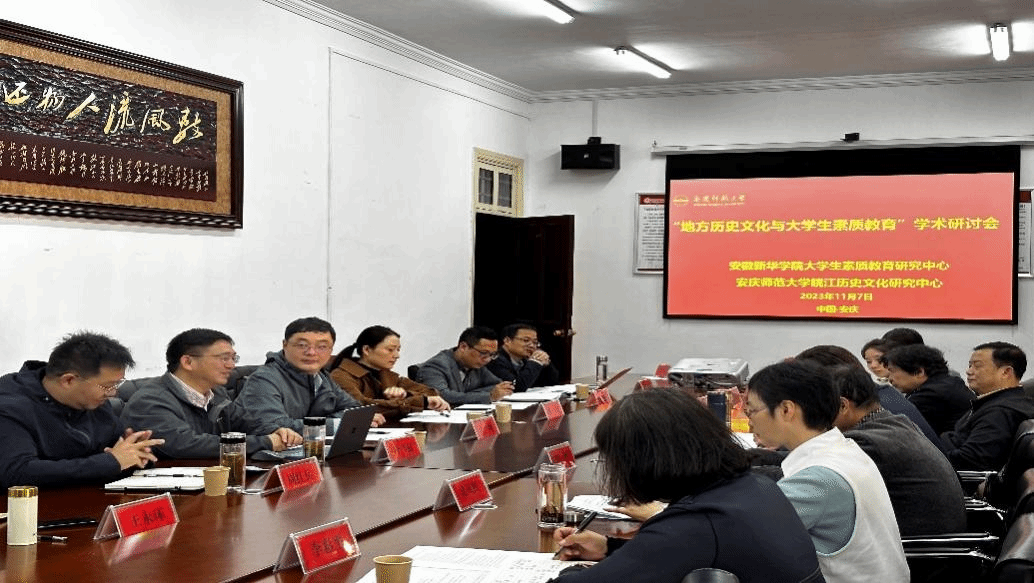 11月7日,bw必威西汉姆联皖江历史文化研究中心与安徽新华学院大学生素质教育研究中心在菱湖校区红楼会议室联合举办“地方历史文化与大学生素质教育”学术研讨会。安徽大学、安徽建筑大学、阜阳师范大学、安徽新华学院等高校专家出席会议。