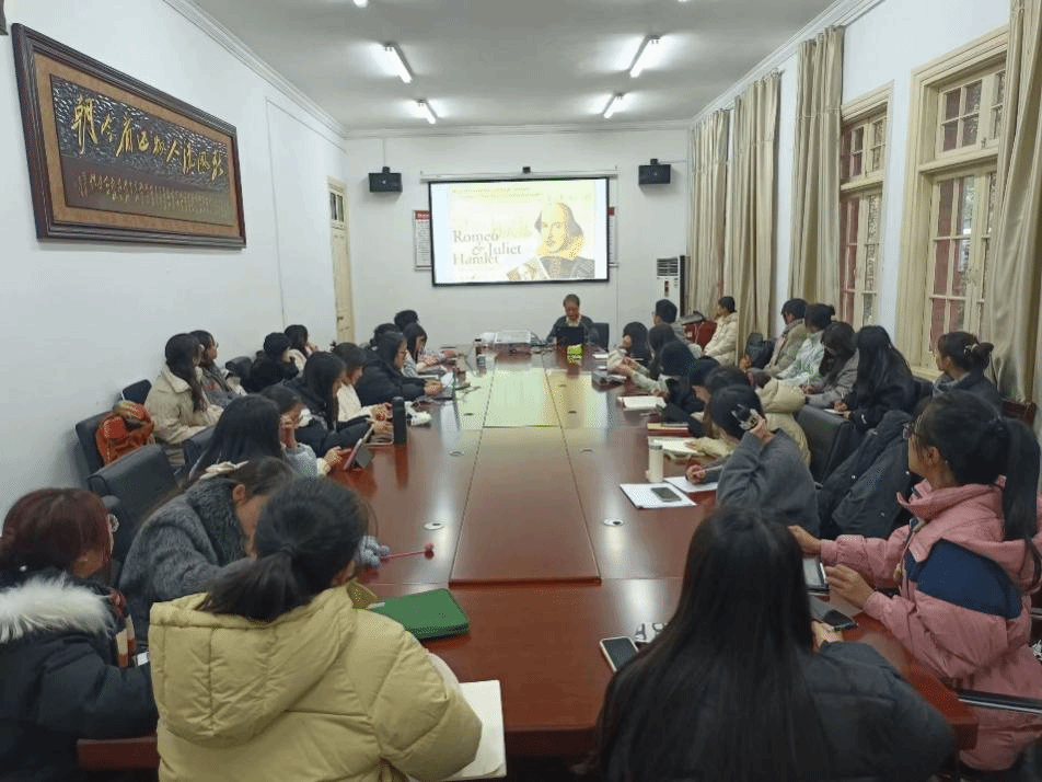 黄维樑教授简要介绍了诗与戏剧的形象性,随后围绕“戏剧中有诗”、“诗中有戏剧”、“‘戏剧化独白’诗”三方面讲述了戏剧与诗的关系,并结合具体文学作品分析了中外诗歌与戏剧文体互渗现象,最后指出文明互鉴在当下时代对于文学创作的意义。讲座结束后,黄维樑教授与现场同学们进行了深入交流。