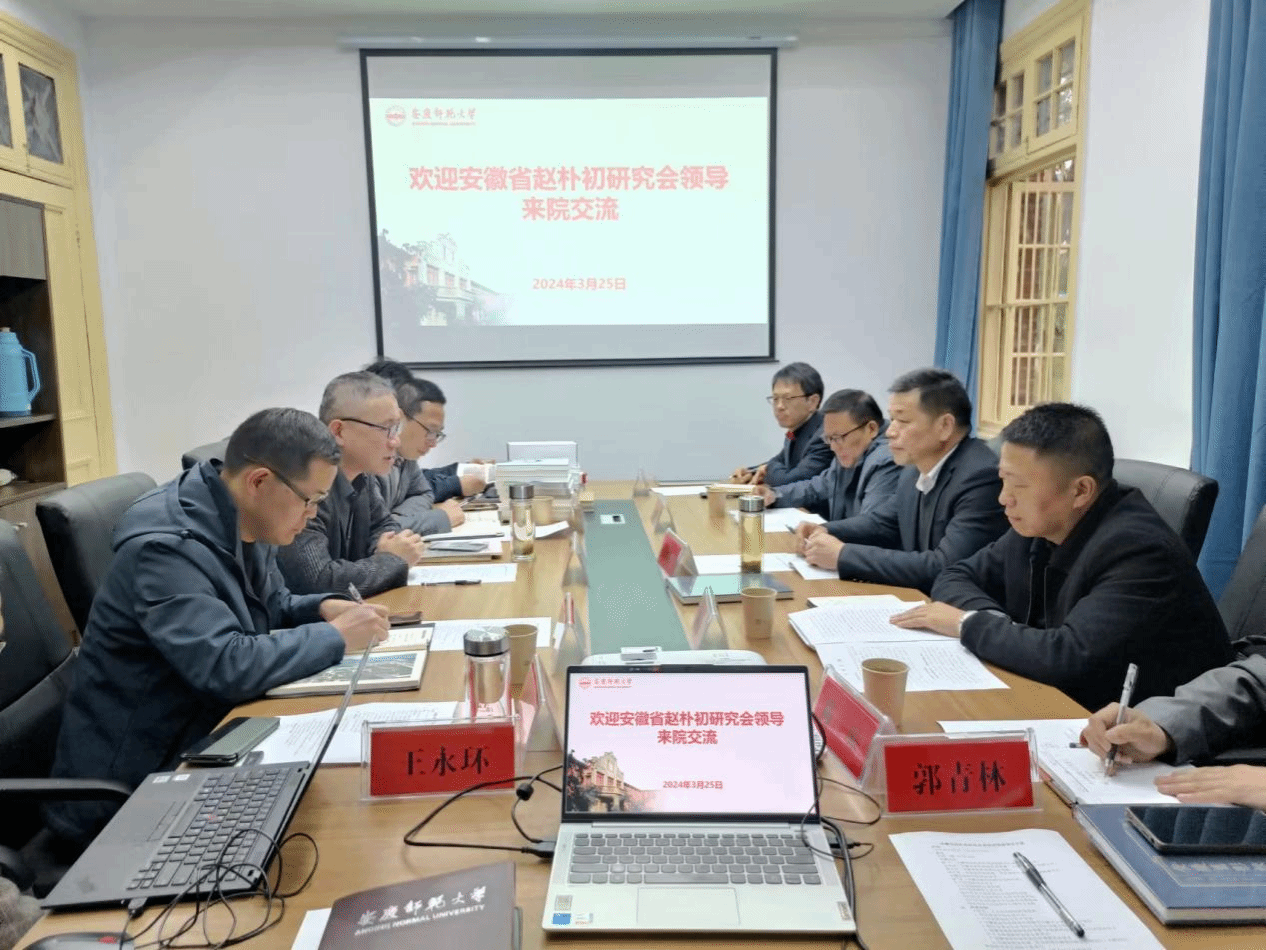 3月25日上午,安徽省赵朴初研究会理事、太湖县政协文史委主任吴向东,安徽省赵朴初研究会副秘书长兼办公室主任郭兵一行五人来院交流,探讨双方合作事宜。副院长汪孔丰(负责行政工作)、副院长金松林、副院长沈志富、皖江历史文化研究中心主任叶当前以及中心工作人员参加了座谈会。会议由副院长金松林主持。