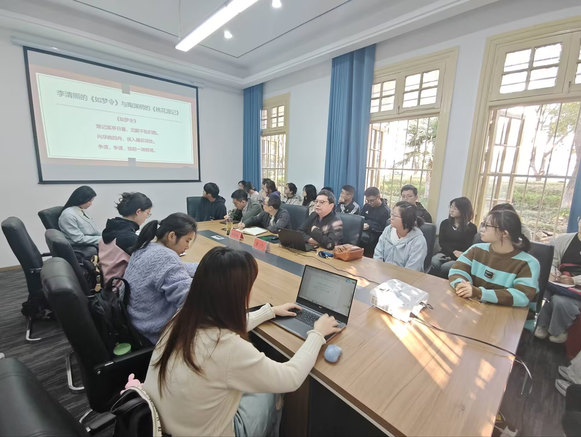 11月11日,中国社会科学院长城学者、文学研究所(首席)研究员,中国社会科学院大学教授、博士生导师范子烨应邀做客敬敷人文讲坛,在菱湖校区红楼106会议室作了题为“互文性的视域:古代经典的文本建构艺术”的学术讲座。讲座由副院长金松林教授主持,我院部分青年教师、研究生和本科生参与了此次活动。