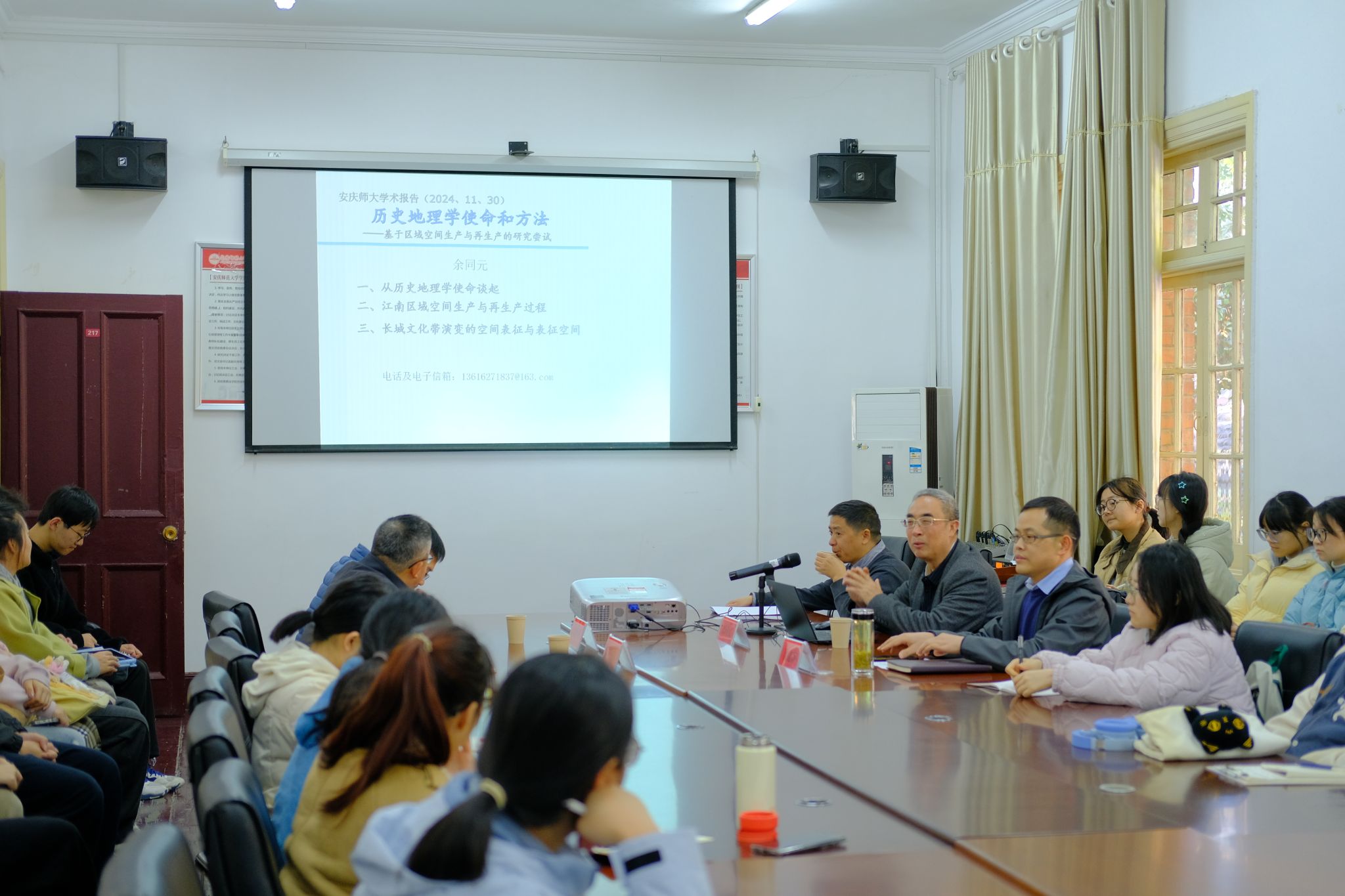 11月30日,苏州大学社会学院历史系博士生导师、国学研究所所长余同元教授应邀做客敬敷人文讲坛,在菱湖校区红楼二楼会议室为师生们带来了一场题为“历史地理学使命和方法——基于区域空间生产与再生产的研究尝试”的学术讲座。本次讲座由必威西汉姆官网平台副院长沈志富教授主持,解春龙、胡世明博士为与谈人,学院相关专业本科生、研究生参加此次讲座。