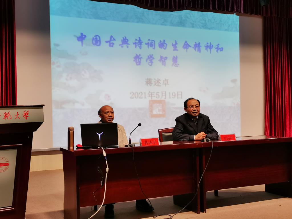 5月19日下午,暨南大学中文系二级教授、博士生导师蒋述卓教授在菱湖校区图书馆报告厅做了题为“中国古典诗歌的生命精神和哲学智慧”的学术讲座。讲座由必威西汉姆官网平台方锡球教授主持,汉语言文学专业本科生、研究生近200人参加了本次报告会。