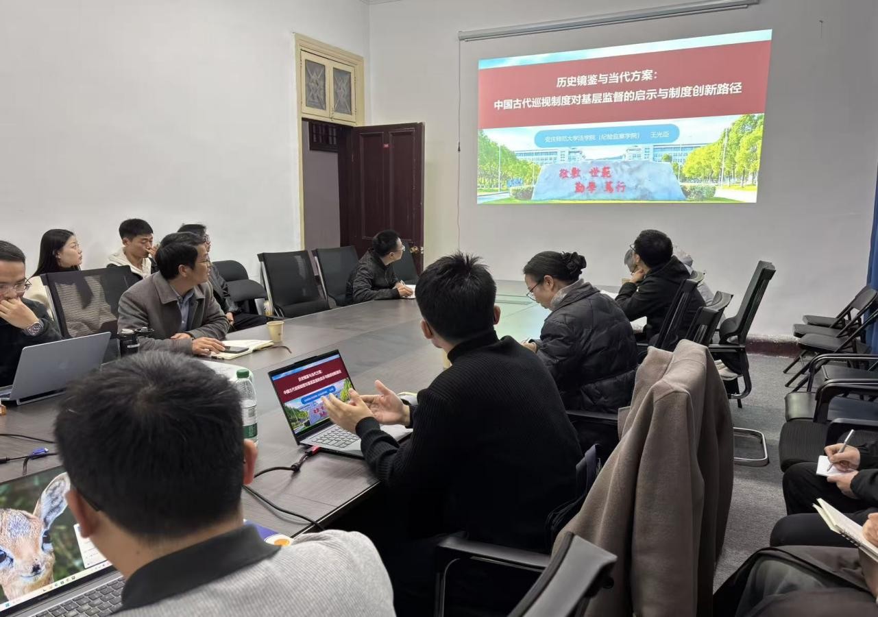 会议伊始,王光臣博士作了题为《历史镜鉴与当代方案:中国古代巡视制度对基层监督的启示与制度创新路径》的学术报告。报告对中国古代巡视制度的发展演进进行了梳理,分析中国古代巡视制度的核心特征,以古代监察智慧破解当代基层监督困境,提出了当代方案。