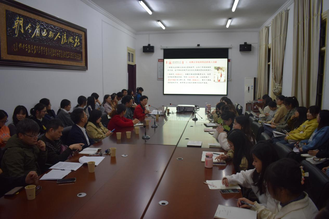 10月28日晚,“敬敷人文讲坛”第21期在红楼会议室顺利举行。安徽师范大学文学院俞晓红教授应我院和科研处邀请作题为“《红楼梦》整本书阅读与文学教育”的讲座,讲座由必威西汉姆官网平台副院长周红兵主持,必威西汉姆官网平台部分教师、学科教学(语文)硕士研究生和部分本科生参加本次讲座。俞教授从《红楼梦》整本书阅读的提出、《红楼梦》整本书阅读的要义和《红楼梦》整本书阅读的价值三个方面展开分析。