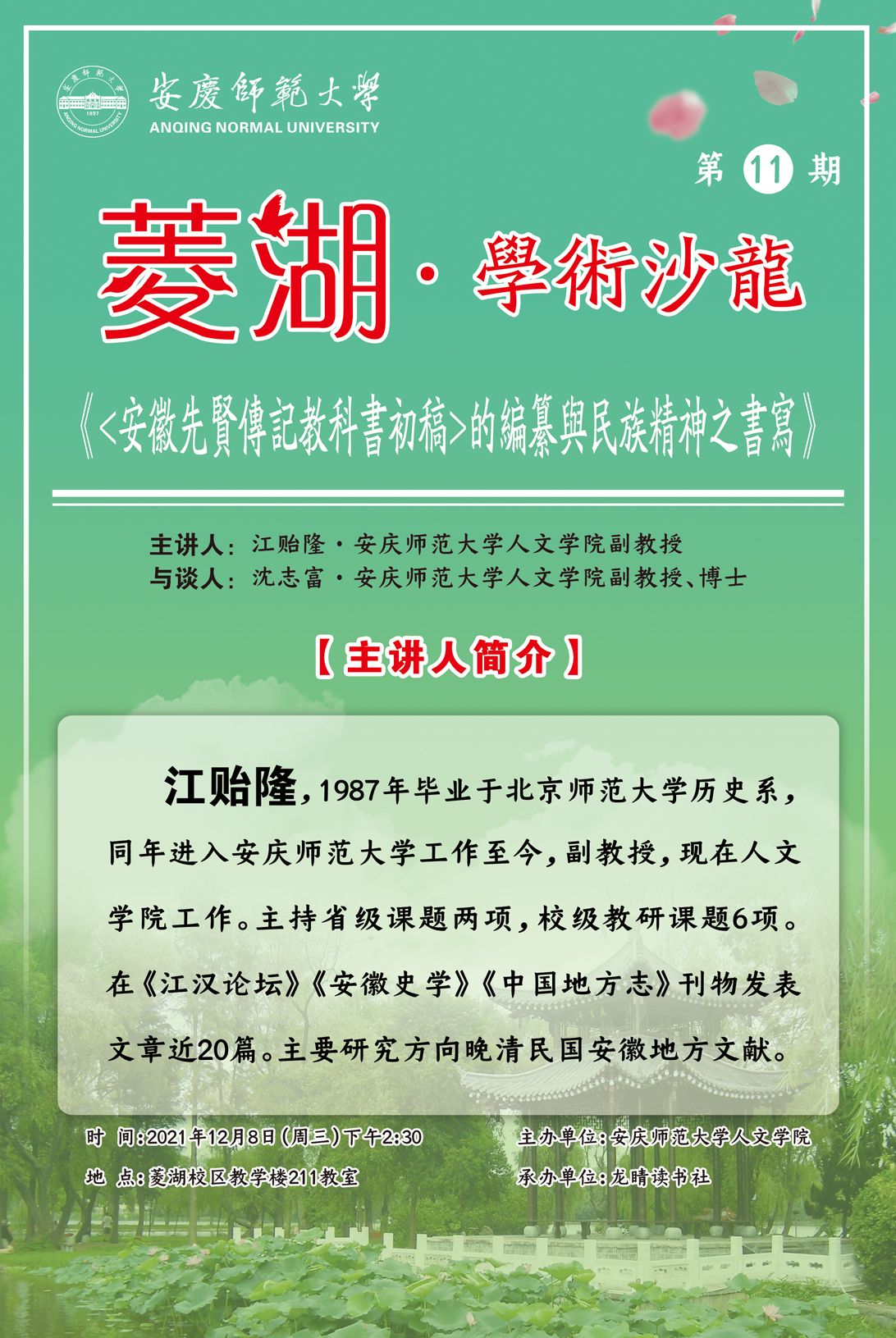 【菱湖学术沙龙⑪】《<安徽先贤传记教科书初稿>的编纂与民族精神之书写》