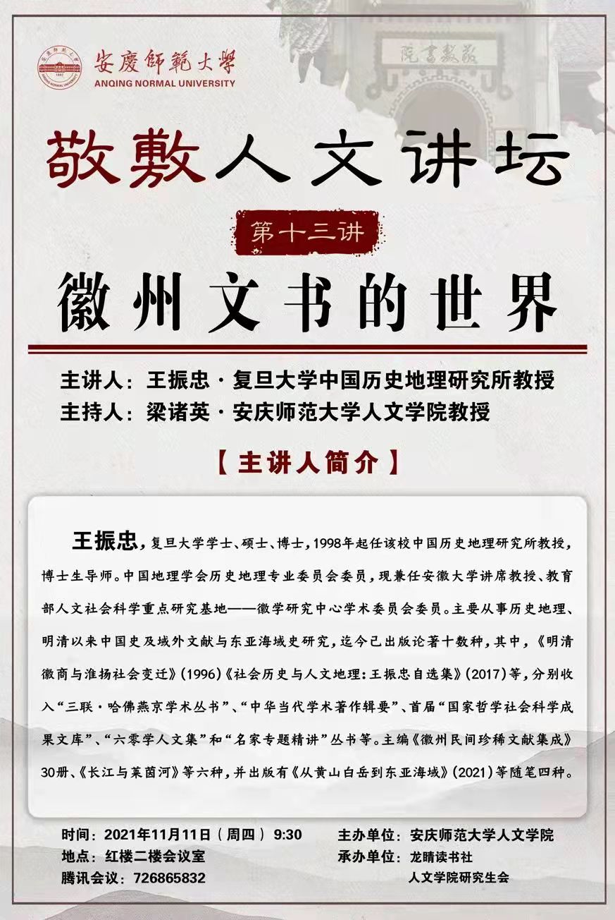 上一篇:徽学名家王振忠教授应邀为我院师生作“徽州文书的世界”报告