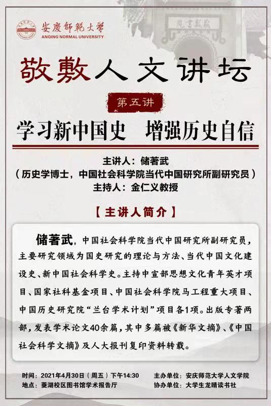 上一篇:我院教师应邀参加安徽省史学会世界史专委会2021学术年会