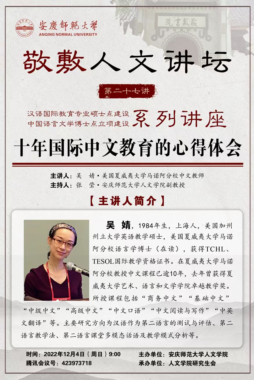 上一篇:美国夏威夷大学马诺阿分校中文教师吴婧应邀作线上报告