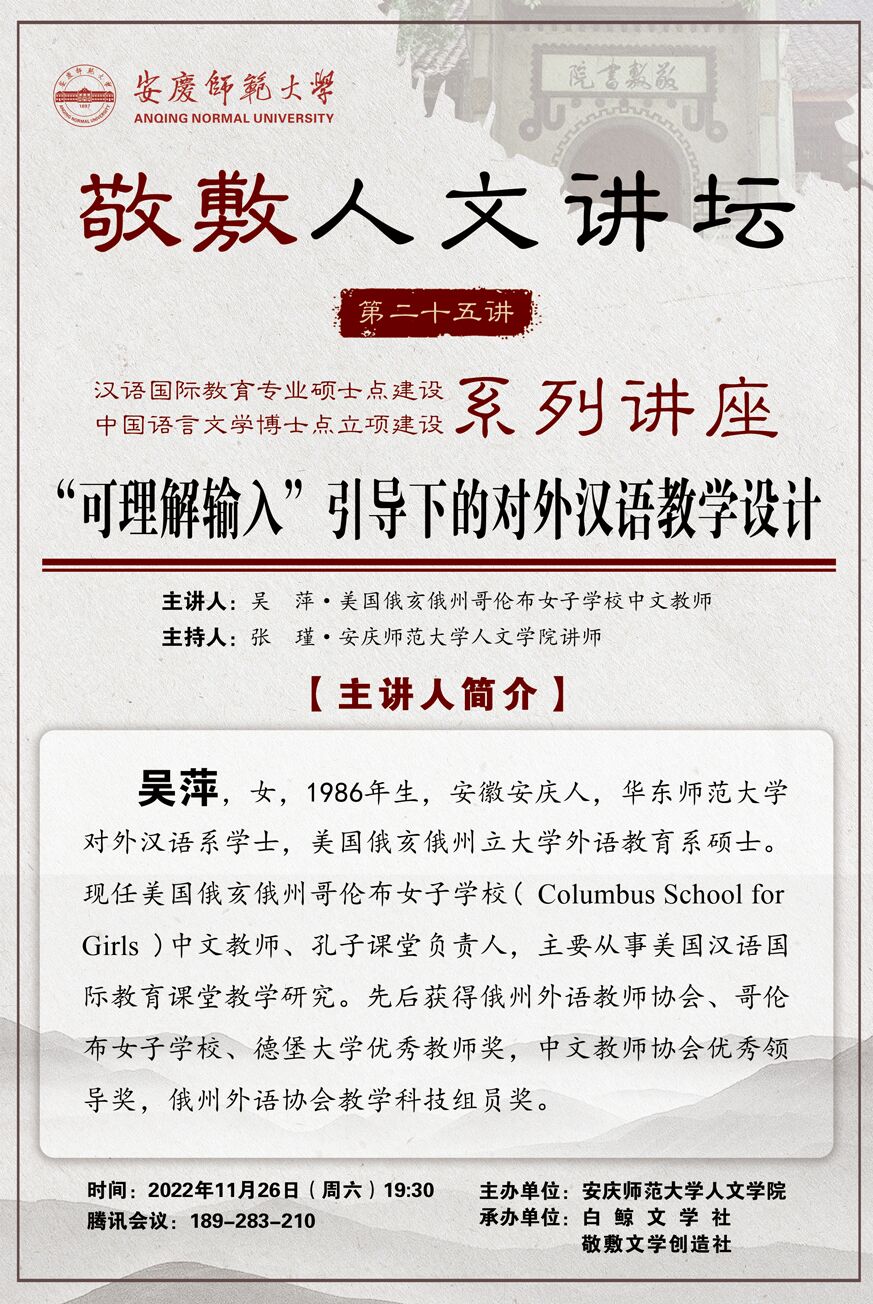 【敬敷人文讲坛(25)】“可理解输入”引导下的对外汉语教学设计