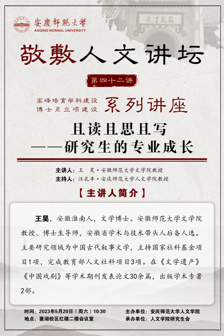 【敬敷人文讲坛(42)】且读且思且写——研究生的专业成长