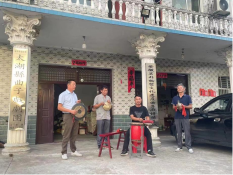 调研组来到松泉村党群服务中心,曹卉向调研组介绍了省级非物质文化遗产太湖曲子戏的悠久历史及发展现状等,强调了曲子戏当前面临的专业人才薄弱、经费不足、传承途径缺乏及后继无人等困境。