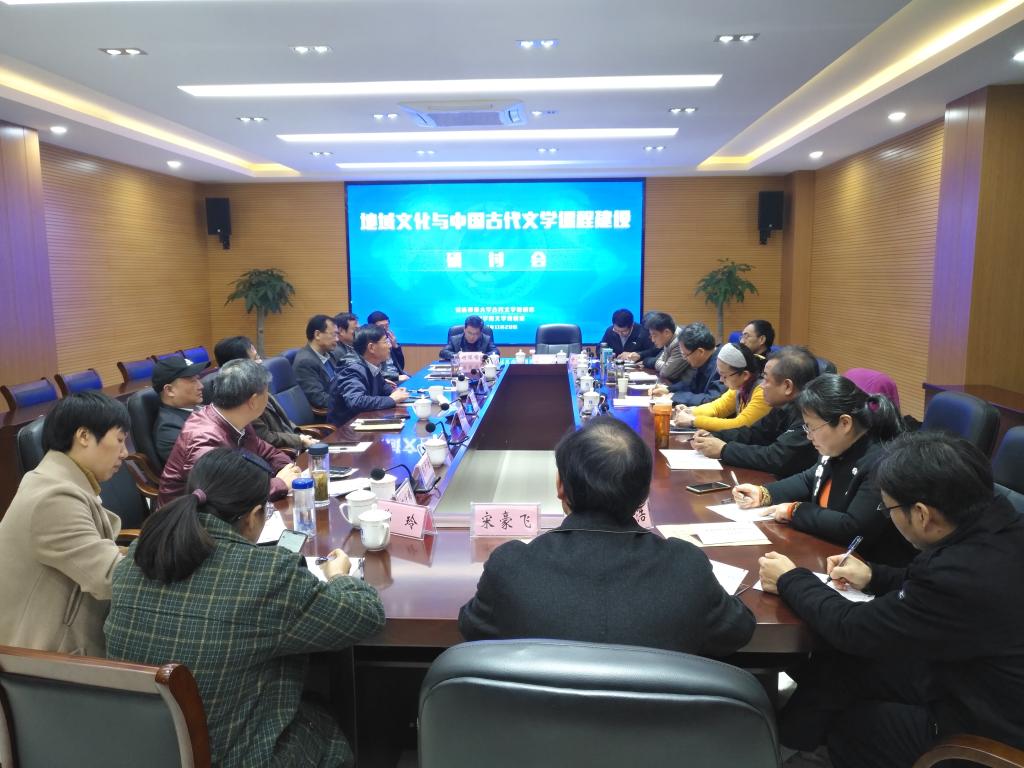 11月20日下午,必威西汉姆官网平台中国古代文学教研室一行12人在中国古代文学省级高水平教学团队负责人、皖江文化研究中心主任汪祚民教授的带领下,赴池州学院开展教学交流,同该校文学与传媒学院文学教研室联合举办“地域文化与中国古代文学课程建设研讨会”。