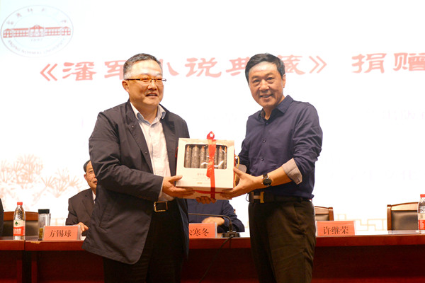 许继荣代表学校接受了潘军先生捐赠的三套《潘军小说典藏》和安徽文艺出版社捐赠的精品丛书。