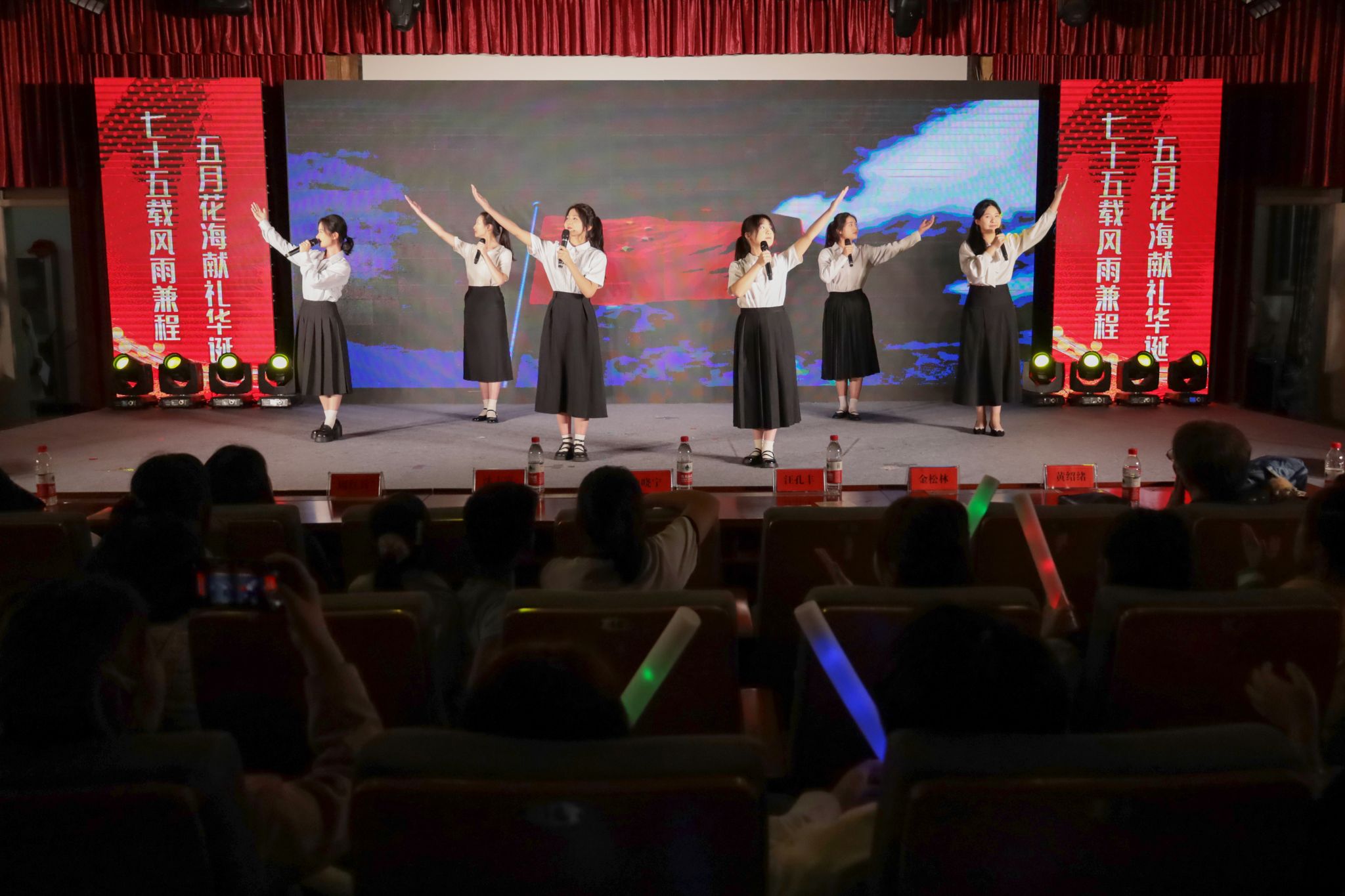 “一生骄傲为我站立的地方,我的样子就是中国的模样。”晚会随着大合唱《有我》的结束落下帷幕,台下的同学们挥舞着手中的荧光棒与演员们齐声合唱,将晚会气氛推向了高潮。