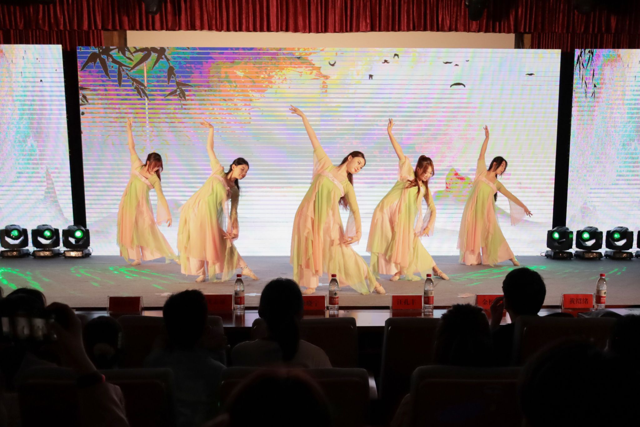 悠扬的古典乐响起,古典舞蹈《青山赋》为观众带来了一场视觉盛宴,六名演员身着粉绿羽衣,随着音乐的节拍步入舞台中央,她们羽衣蹁跹,衣袖舞动,舞姿充满古典美韵。汉语国际教育专业2023级外籍研究生Achraf表示,通过观看完《青山赋》舞蹈表演,他感受到了中国古典舞蹈的独特魅力,激发了他对中华古典文化的浓厚兴趣。