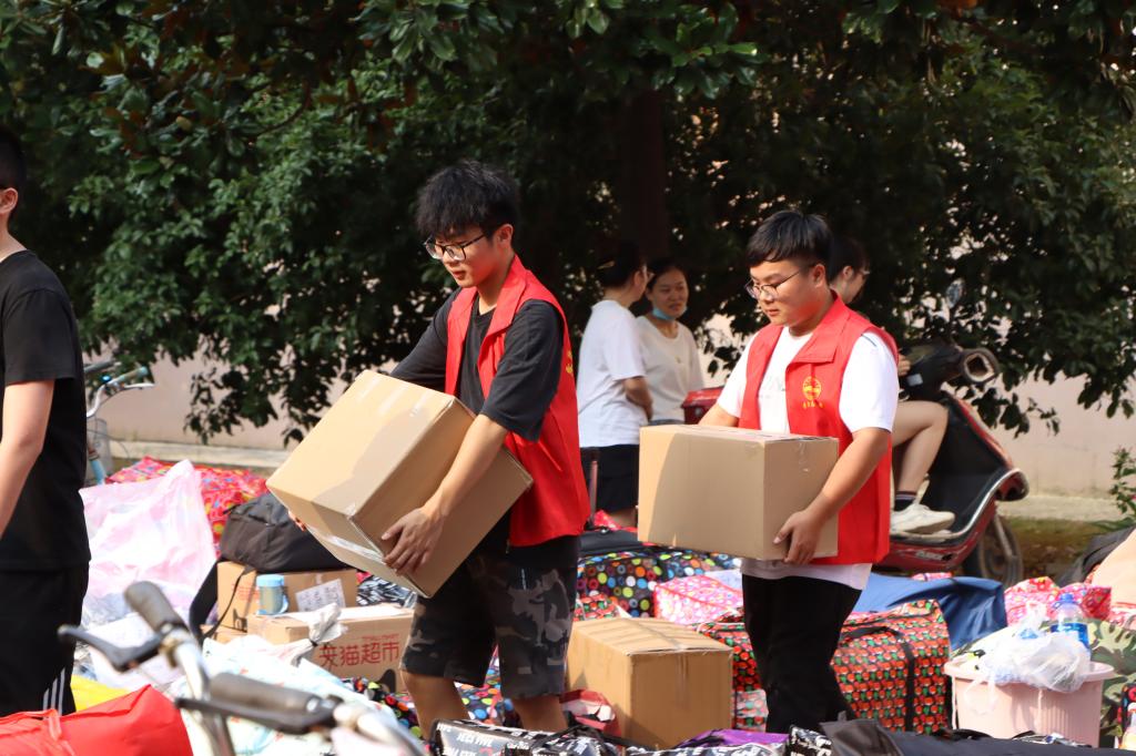 抬行李、扛被褥、提水瓶……志愿者们早晨七点就来到了宿舍楼,来回奔走,汗水打湿了马甲,但他们的行动丝毫没有受到影响。“既然选择了做志愿者,就应该尽自己所能地把这件事情做好,这既是对这个身份负责,也是对自己负责。”学院汉语言文学专业2019(2)班的李路凡笑道。