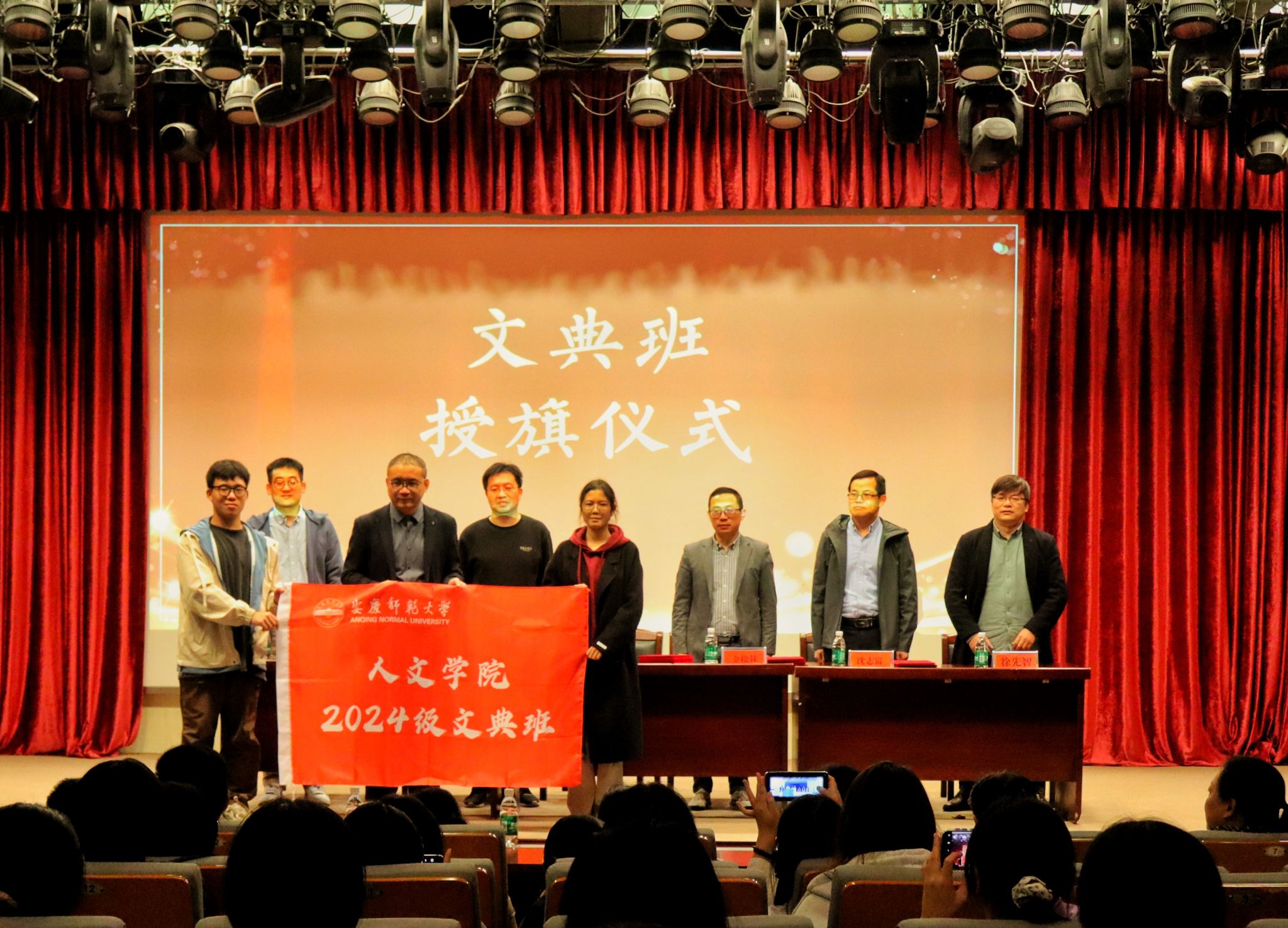 随后,必威西汉姆官网平台院长汪孔丰为2024级文典班授旗。随着授旗仪式的结束,会议进入第二阶段——本科生导师师生见面会。周红兵详细介绍了文典班的师资力量,以及导师工作细则。他表示每一位老师都拥有深厚的学术功底和丰富的教学经验,这些老师将会用自己的知识能力、人生经验为同学们打开汉语言文学专业的大门。介绍环节结束后,必威西汉姆官网平台领导向各位导师颁发聘书,24级文典班学生代向导师赠送纪念品。最后,24级文典班全体学生与导师合影留念。
