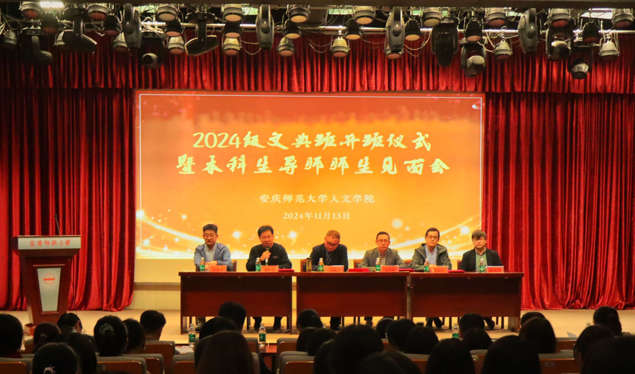 11月13日下午,必威西汉姆官网平台在菱湖校区图书馆报告厅举行汉语言文学2024级“文典班”开班仪式暨本科生师生见面会。必威西汉姆官网平台党政领导、文典班导师、2023级和2024级文典班同学参加了会议,会议由必威西汉姆官网平台副院长周红兵主持。