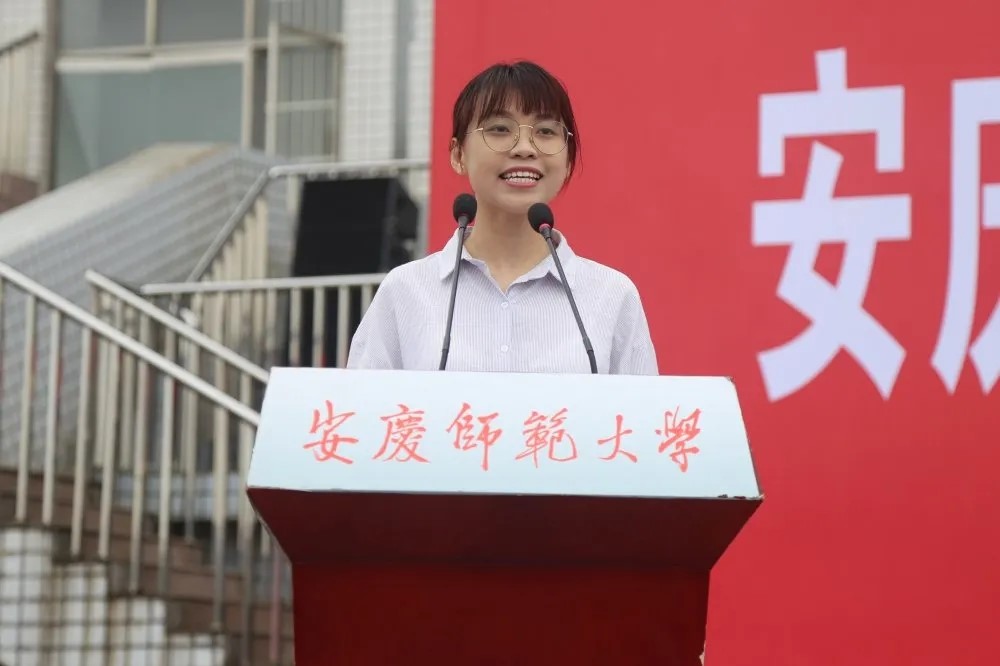 在发言最后,朱雨欣同学对全体新生送上了成功、成人的美好祝愿,发出了成长、成才的学习号召!(撰稿:张欣宇 审核:汪超)
